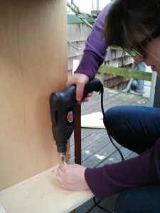 I love my apartment, but I’ve hated the mess around the garbage area in our kitchen since I’ve moved in. Pete and I decided to finally do something about it one weekend. We’ve got the basic construction done and one of these days I’ll get around to sanding and painting it. I can’t say that we’re expert carpenters but we definitely made some cool finds that day, the coolest being our local re-build center that recycles old building materials. Way easier and cheaper than starting from scratch!