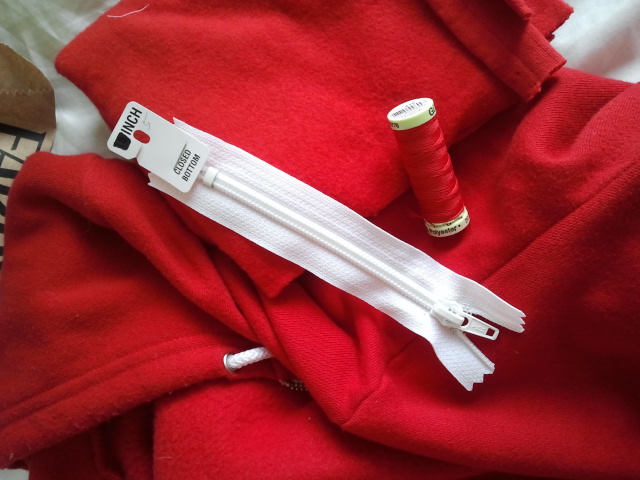 My boyfriend requested an upgrade to his favorite hoodie, so we’ve bought all the stuff and I’m supposed to be sewing a iphone pocket onto the sleeve. Er, almost done, baby!