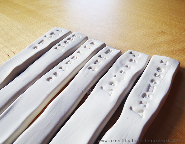 The tutorial was well laid out, extremely easy to follow and I’m quite pleased with the results! The only issues I had was that I had to apply a fair amount of pressure to the stamps to get a letter that showed up well enough in the clay. Sometimes this left the square indent from the bottom of the stamp around the letter. If this happens just lightly run your fingers over the area 4 or 5 times and it should smooth right out.