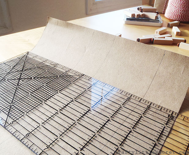 DIY Holiday Gift BagI used the edge of my ruler to fold upward along each line, then the edge of my stamp (though anything firm would do) to press along each fold to make it nice and crisp.