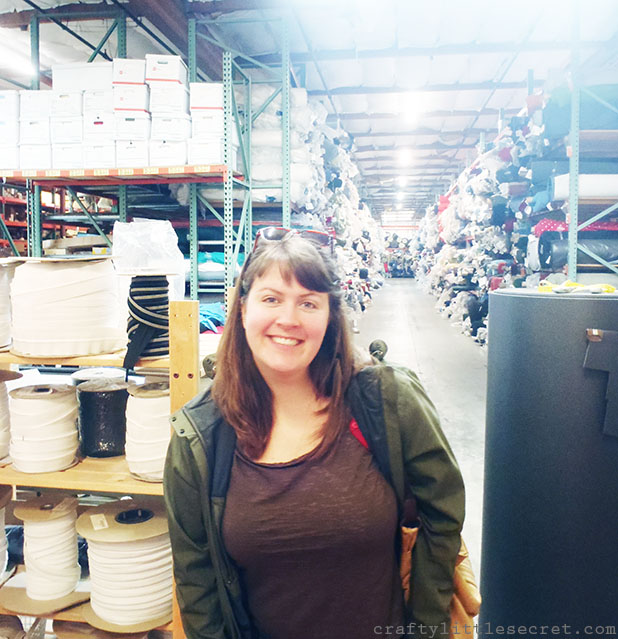 They had a huge selection of fabrics out front to sort through but also an amazing warehouse that you can see stretching out behind me. This place was like, twice the size of Discount Fabrics in San Francisco but entirely devoted to outdoor and technical fabrics! From swim wear to sports jerseys to lycra and microfleece, we were drooling over their selection.