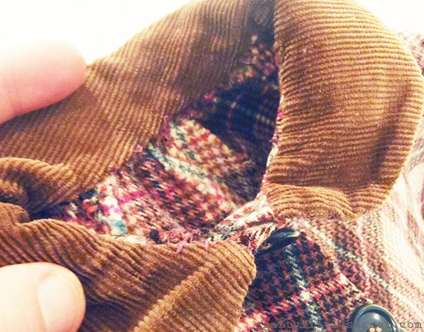 Inspecting the details on this project revealed all the care and love put into the jacket with a hand-stitched collar, button placket and hem.
