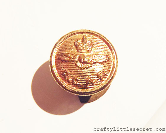 Nautical buttons from a dress my mom had made herself, a button off her brownie uniform (or maybe mine?), a button from a maternity shirt, and a button off her father’s RCAF uniform