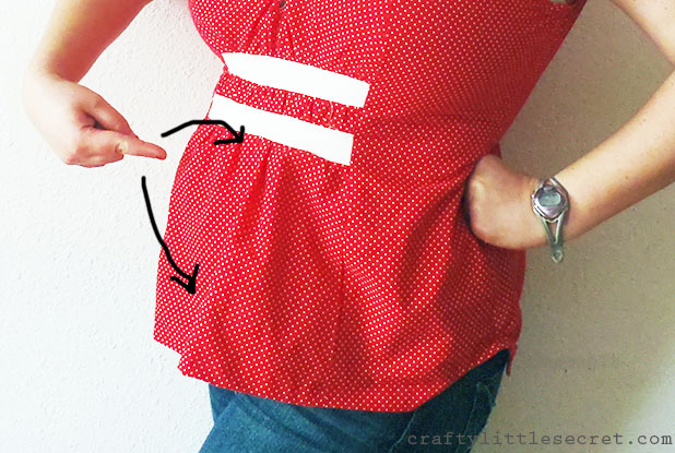 When I make the real version I’ll have to be careful to make sure my gathering is even and that I’m not adding belly bulk. Might not be such a big deal though because the fabric I’ll use for the real version has much better drape than this relatively stiff quilting cotton.