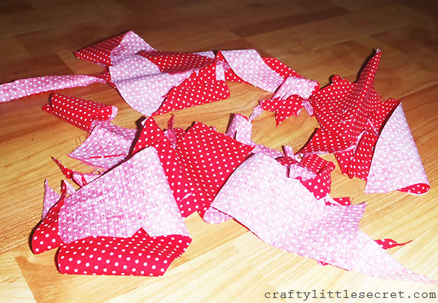 I only had 1 meter of the red fabric, but seriously guys, you have never seen someone get so much out of so little fabric! I literally only had a handful of mini-scraps left after cutting. I felt compelled to commemorate my achievement with photographic evidence. The leftovers;