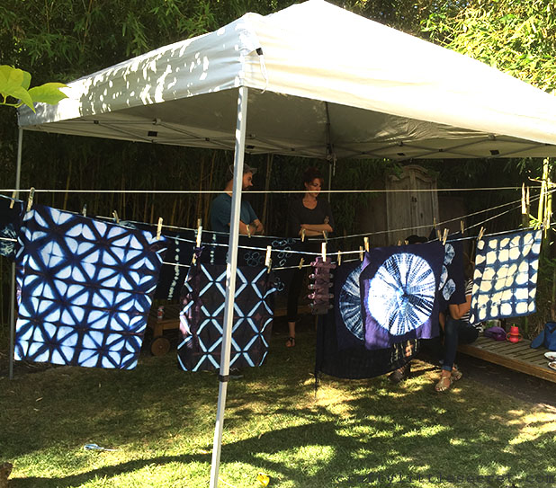 A friend of mine attended a shibori dying workshop a couple months ago and has been addicted to shibori ever since. I’d been toying with the idea of working on a shibori quilt or other project, but just never really got my rear in gear. So when he offered to spend a Sunday teaching me about shibori dying and generously sharing his tools, I jumped at the chance!