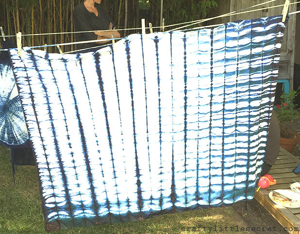 Kristy brought some linen that she cut into 20″x20″ squares to make napkins. You can see in the photos below that the dye penetrated the fabric really, really well making clean sharp lines and consistent dye patterns.
