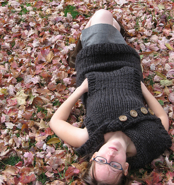I thought about it though and don’t really feel like making a sweater. I’ve got lots of ’em. Then it struck me. A sweater dress!!!! As I trolled Ravelry for the perfect pattern it occurred to me that I didn’t want to pick something knit on the world’s lightest weight yarn this time (something I’m prone to doing) and that this might be the perfect project to delve into the world of chunky weight yarn!