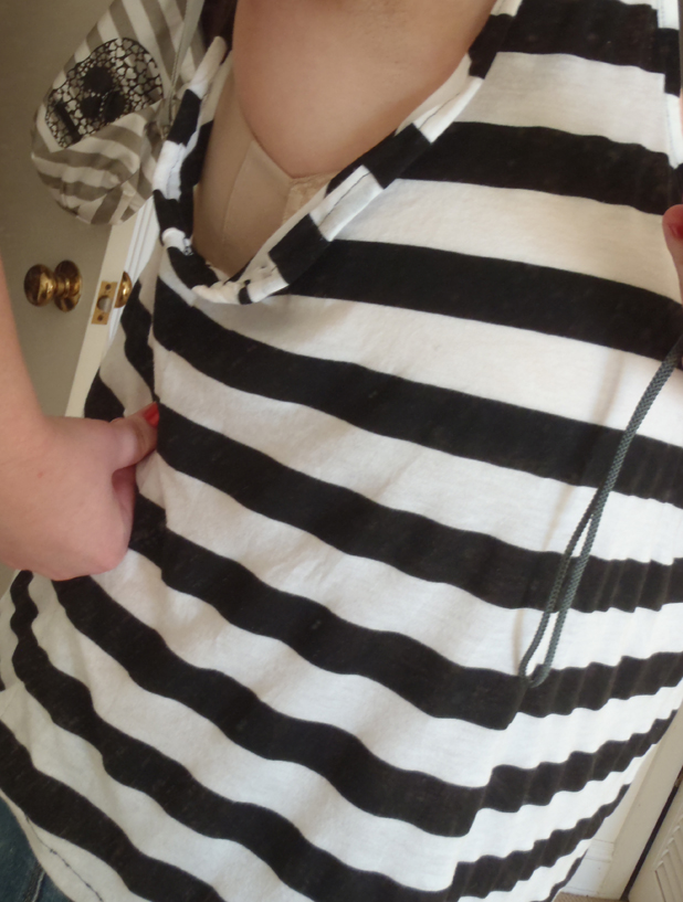 The whiskers didn’t turn out as well as I had hoped. I meant to go to the Hardware store and pick up some black electrical wiring to use as the whiskers but ran out of time and had to make do with what I had at home. I ended up using some pink pipe cleaners that I tightly wrapped with black yarn. I bent them in half forming a V-shape, cut two small snips in the hood of my onesie and slipped the pipe cleaner through. I tried to hand stitch them into place but found that they were too floppy and didn’t stick out the way I would have liked. I think they needed a support sewn on but I had just flat out run out of time, so I left them as they were!