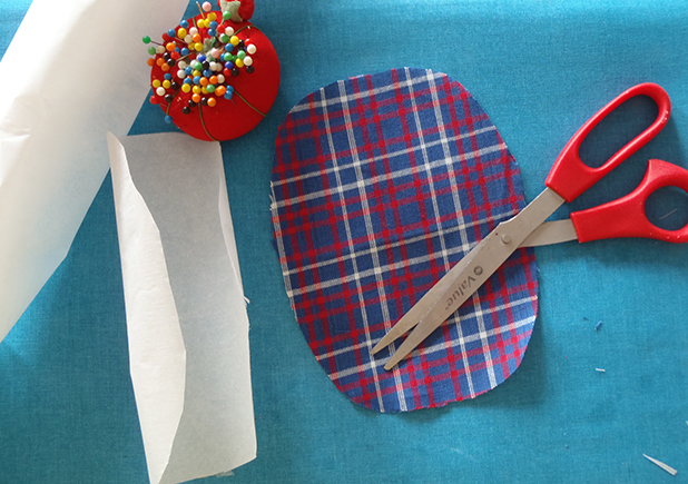 1. Cut out a rough shape in fabric, and the same shape, slightly smaller, from the paperbacked adhesive web.