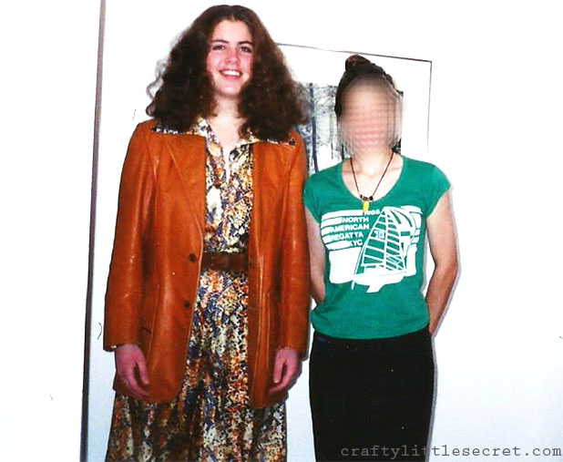 Instead, in high school I found thrift shopping as my way of expressing myself through my wardrobe. I became obsessed with styles from the 60’s and 70’s (and still am, though now I’m more partial to mod looks while back then I was fully committed to scruffy hippie) and would buy anything I could find with bell bottoms or wide lapels (or both, as is the case in the photo below). My parents were 100% on board with their teenage daughter announcing that she would only buy used clothes and happily handed over the $50 in September that would cover all my back-to-school shopping at Value Village.